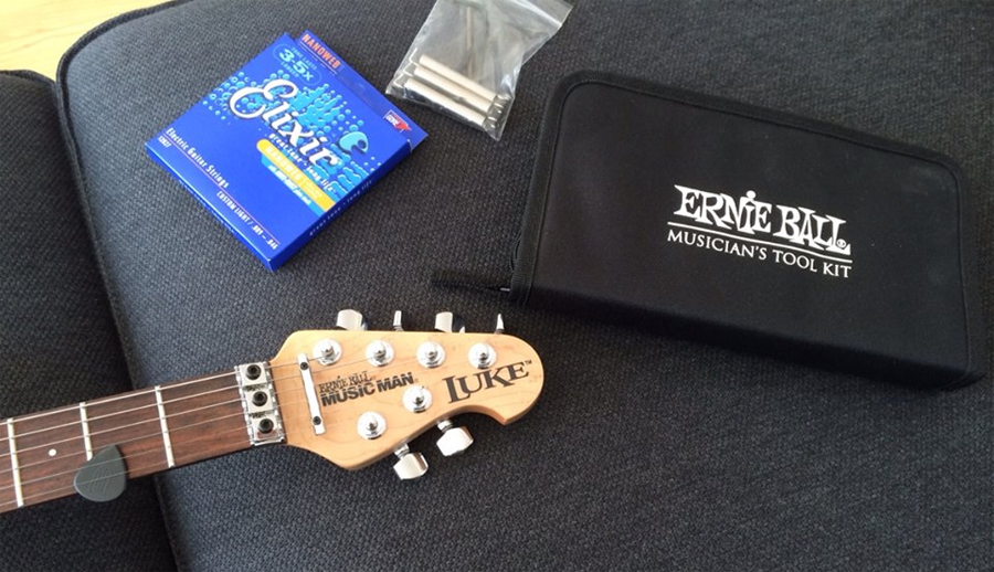 A láncszem legfontosabb darabja, mindennek az alfája. Több tucat gitár után jutottam el az Ernie Ball Music Man John Petrucci Signature szériához. Eleinte, amikor még csak hangszerboltban volt hozzá szerencsém, emlékszem megnyugvással konstatáltam, hogy az Ibanez JPM-em (szintén Petrucci model) jobb hangszer, így nincs is szükségem a Music Man-re.