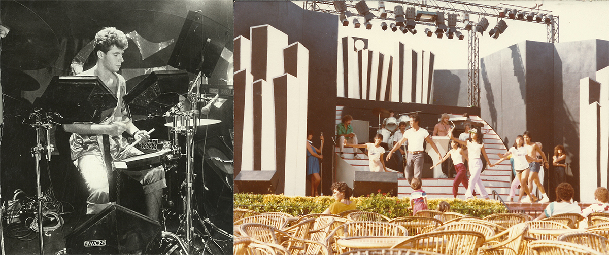 Ehhez el kell mesélnem a fiatalkori történetem. Hat éves korom óta dobolok, 16-17 éves koromban kezdtem el játszani különböző rock zenekarokban. 18 évesen, az érettségivel nagyjából egy időben vizsgáztam az Országos Szórakoztatóipari Központban, „A” kategóriás dobos lettem. Eszembe sem jutott, hogy valaha is sztár vagy ismert zenész lehetek, csak azt gondoltam, hogy el kell kezdenem dolgozni, ezért elmentem vendéglátózni. Először Csillaghegyen a Strand étteremben játszottam egy trióval néhány hónapig, majd egyik éjjel hallottam, hogy dobost keresnek a Thermal Hotelben. Hajnali 3-kor, amikor végeztünk a trióval, át is bicikliztem, megkerestem a zenekarvezetőt, és megkértem, hogy hallgassanak meg. Kétkedve, de beültettek a dob mögé, kérdezték, hogy tudom-e a It ain’t easy című számot, mondtam, hogy persze. A billentyűs felvett egy fejhallgatót, beszámolt, és elkezdtünk játszani. Az első refrénig jutottunk el, amikor a billentyűs leintett, és azt mondta: „Na, jó! Együtt vagy még a dobgéppel.” Hozzáteszem, hogy ez engem is meglepett, mert addig csak rock zenét hallgattam és játszottam, nem gyakoroltam metronómra, és ilyen jellegű stúdiómunkáim sem voltak még. Nem tudtam magamról, hogy annyira pontos lennék, hogy együtt maradok a dobgéppel anélkül, hogy hallanám azt. De hát, ez történt. Miután beléptem ebbe a zenekarba, szinte azonnal lehetőséget kaptunk, hogy kimenjünk Olaszországba zenélni. Irgalmatlan szerencsénk volt, egy olasz impresszárió eredetileg Németországban keresett zenekart erre a munkára, de későn eszmélt, és már az összes profi német csapat foglalt volt, így Magyarországra utazott. Pont a Thermalban szállt meg, és egyik este lejött a bárba, ott hallotta meg a zenekart. Két hónap múlva indultunk is, a következő fél évet Szardínia szigetének legdélibb pontján töltöttük. Egy 800-1000 fős nyitott, forgószínpados, szabadtéri diszkóban játszottunk egy másik zenekarral váltva, naponta egy órát. Viszont azt showműsor szerűen, tehát nem volt tréfa. A szervező minden napra kitalált egy műsort, egyik nap rock’n’roll, másnap disco, aztán jött például egy újhullámos est, és az adott stílusnak megfelelően kompletten minden - beleértve a ruhánkat, a hajunkat is - átalakult arra az estére. Miután itt véget ért a szerződésünk, felmentünk Norvégiába, én onnan jöttem haza.