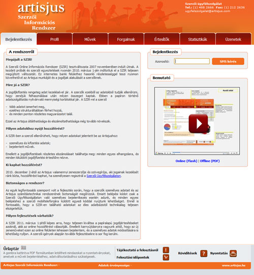 Az ARTISJUS online Szerzői Információs Rendszerének (SZIR) megújított tesztváltozata idén tavasszal indult az egyesületi tagok számára. Ez internetes banki felülethez hasonló részletességgel teszi nyomon követhetővé az Artisjus munkáját es a jogdíjak alakulását a szerzőknek. A mai naptól minden dalszerző hozzáférhet ehhez a rendszerhez, akinek akár egyetlen bejelentett műve van az Artisjusnál, és jogai kezelését az Artisjusra bízza.