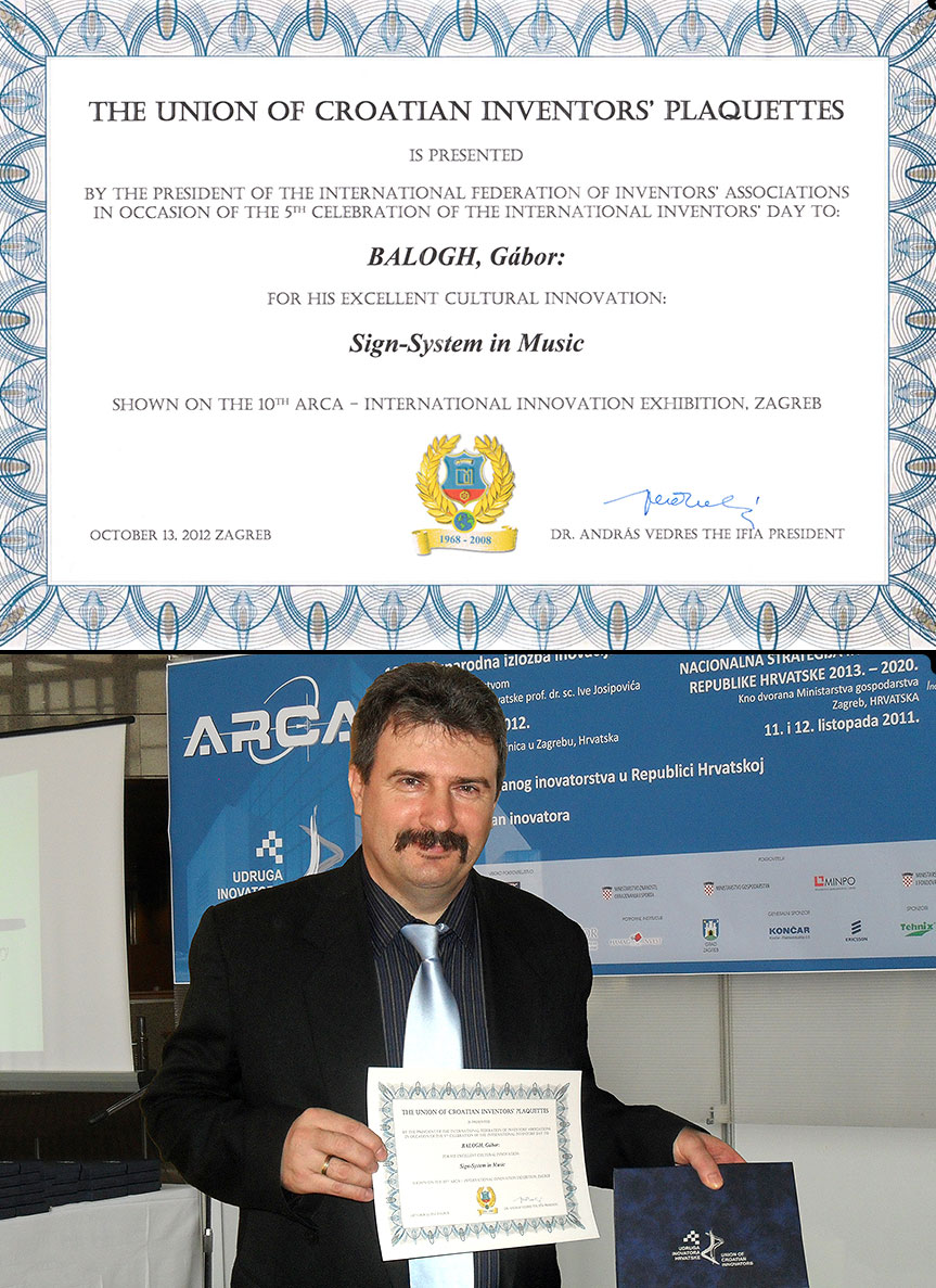 Balogh Gábor által kifejlesztett zeneoktatási módszer Kulturális Innováció kategóriában Kiváló Újításért díjat kapott a 10. Nemzetközi Innovációs Kiállításon Zágrábban.