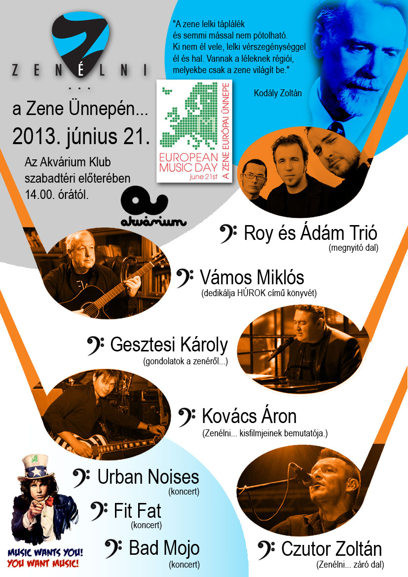 1984 óta június 21.-e a Zene Ünnepe. Talán csak kevesebben tudják, hogy ez a nap annak idején azért lett kijelölve, mert francia szociológusok és zenekutatók felfigyeltek arra a szomorú tényre, hogy egyre kevesebben játszanak hangszereken szerte Európában, így hazánkban is.
