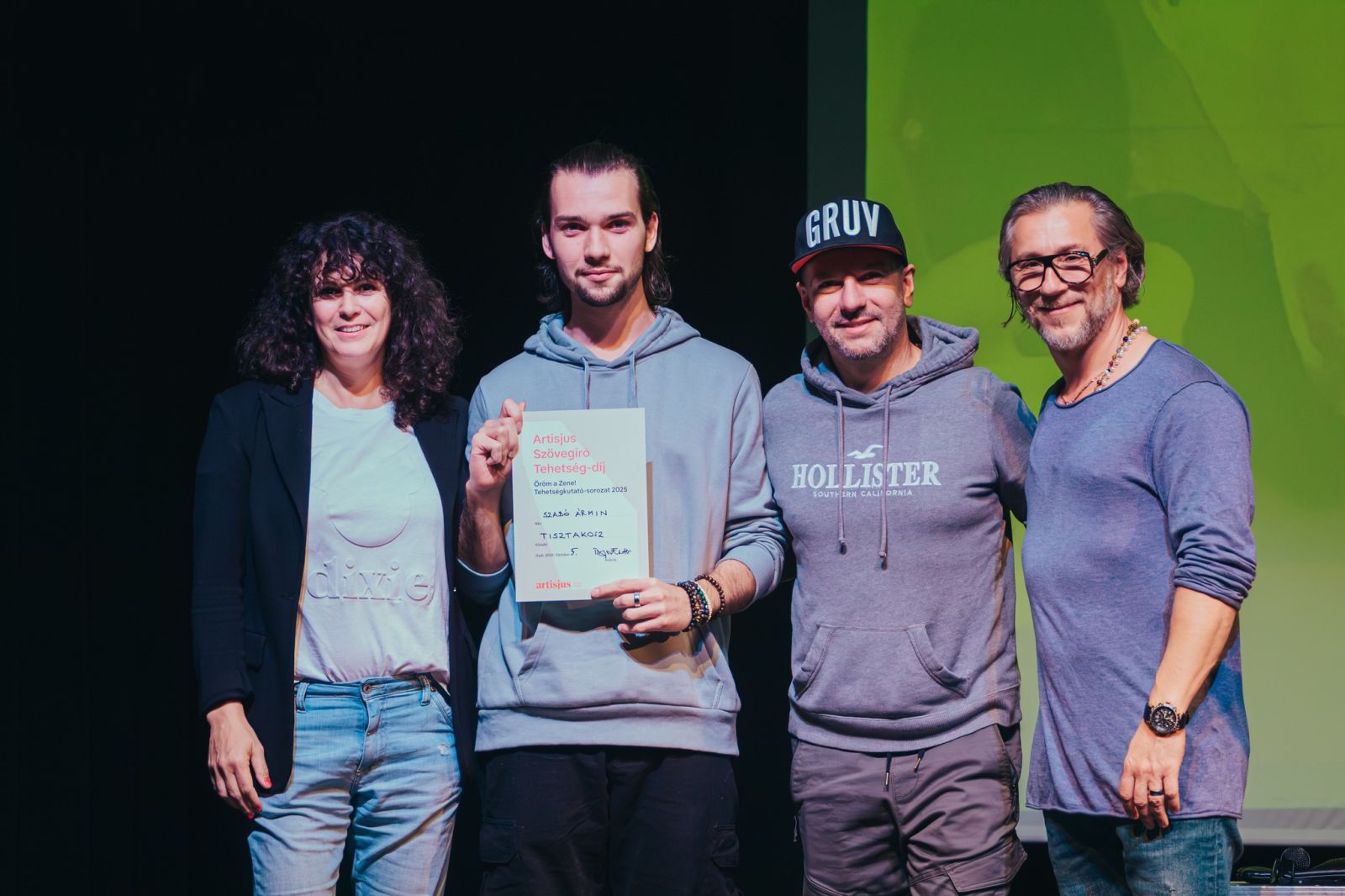 A tizennyolcadik évadához érkező ÖRÖM A ZENE Tehetségkutató sorozat a tavalyi esztendőben csatlakozott az ARTISJUS - A DAL ÉRTÉK kezdeményezéséhez. Már a 2024-2025-ös évadban sem passzív módon igyekeztünk részt vállalni ebben a rendkívül fontos és nagyszerű kezdeményezésben. A sorozathoz tartozó összes tehetségkutató eseményünkön ismeretterjesztő, edukációs anyagokkal és mini előadásokkal hívtuk fel az induló előadók figyelmét a tudatos szerzői létezés fontosságára. Illetve a sorozat valamennyi állomásán díjaztuk a legjobbnak ítélt dalokat, és a döntőben az Artisjus Zeneszerző Tehetség-díját, valamint az Artisjus Szövegíró Tehetség-díját is odaítéltük. Szeretnénk ezt a tevékenységet az idei évadban magasabb szintre emelni, ezért interjú sorozatot indítunk a tehetségkutatók legjobb dalainak szerzőivel. A sort Szabó Ármin, a TISZTAKOSZ zenekar énekes-dalszerzőjével folytatjuk. Szabó Ármin a teljes 2024-2025-ös évad Artisjus Szövegíró Tehetség-díját nyerte el, valamint a TISZTAKOSZ zenekar a Helynekem Helyfoglaló Zenei Tehetségkutató Fesztivál legjobb Dala díjat is elnyerte a Héphaisztosz című szerzeménnyel, melynek szerzői: Szabó Ármin és Bencsik Dániel.
