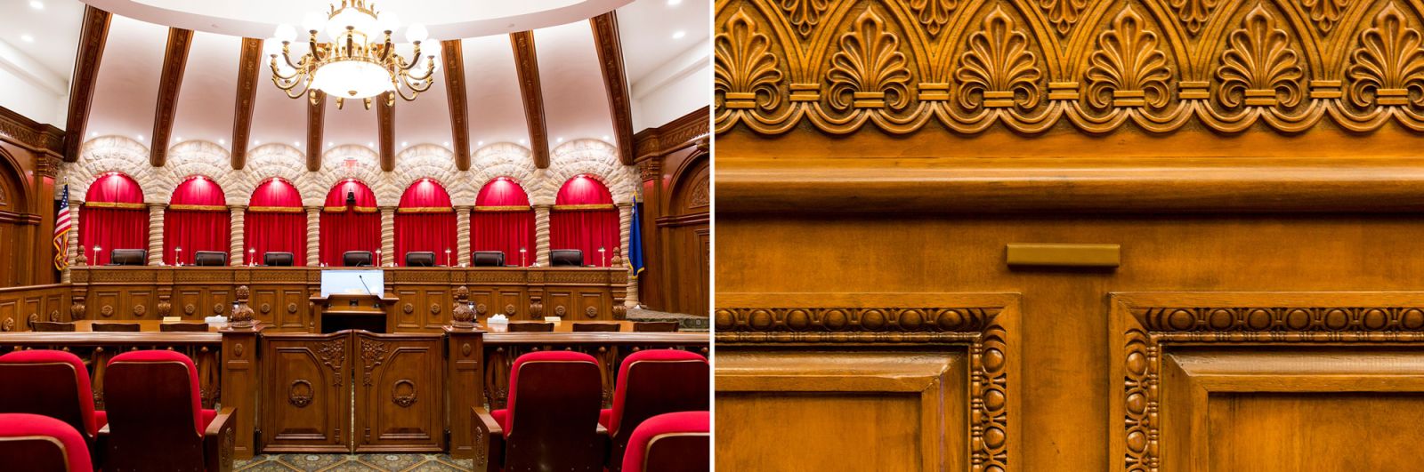 A ügyészi/ügyvédi terület kupolás mennyezete lehetetlenné tette az erre a konfigurációra jellemző mennyezeti hangszórók használatát, így a Conference Technologies három egyedi színnel ellátott Lyzard-KZ14 hangszórót telepített és épített be a pulpitus elejébe. Végül a bíróság nagyon elégedett volt a rendszerrel, és nagyszerű visszajelzéseket kaptak a nyilvánosságtól, valamint a Legfelsőbb Bíróságon megforduló ügyvédektől.
