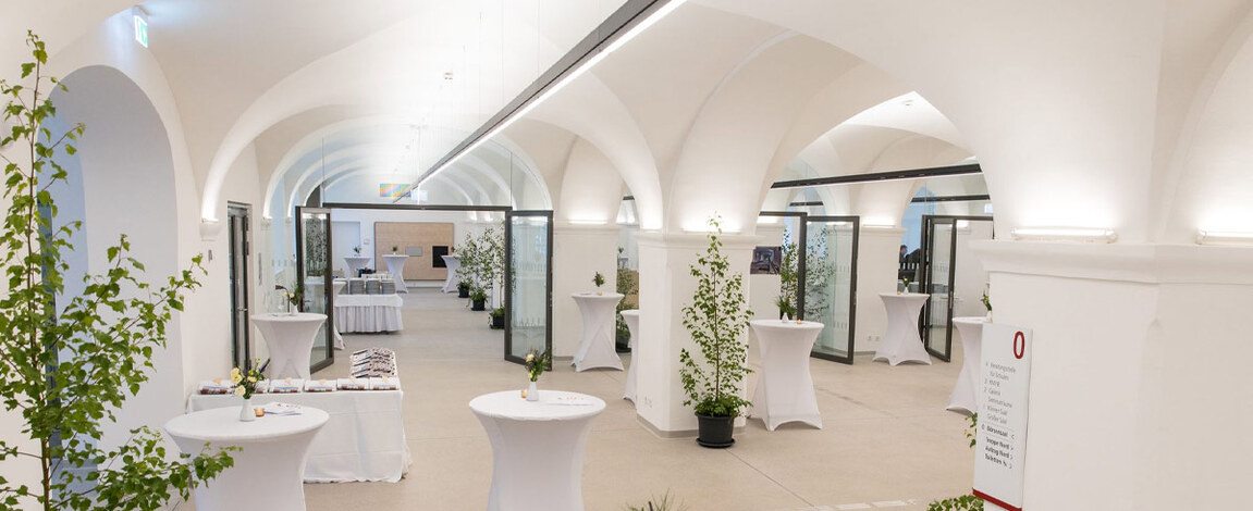 „Kempten városának az volt a kérése, hogy úgy ruházzuk fel a Kornhaus épületét a legmodernebb technikai megoldásokkal, hogy közben a történelmi miliő se szenvedjen csorbát” – magyarázta Klüpfel. „Olyan világítási és hangtechnikai megoldásokat kerestünk, amelyek ebben a szellemben működnek.” A földszint boltíves mennyezete, monumentális oszlopai és építészeti szimmetriája kihívást jelentett a különböző zónák meghatározása és az adott atmoszférát tiszteletben tartó AV-technika integrálása szempontjából. A nyitott tér egyszerre több funkciót is ellát: egy előcsarnok, egy bár és vendéglátóhely, valamint egy kiállítási, illetve múzeumi zóna is helyet kapott benne. A felhasználási sokszínűség mind a világítás, mind a hangelosztás tekintetében rugalmasságot igényelt a tervezés során.