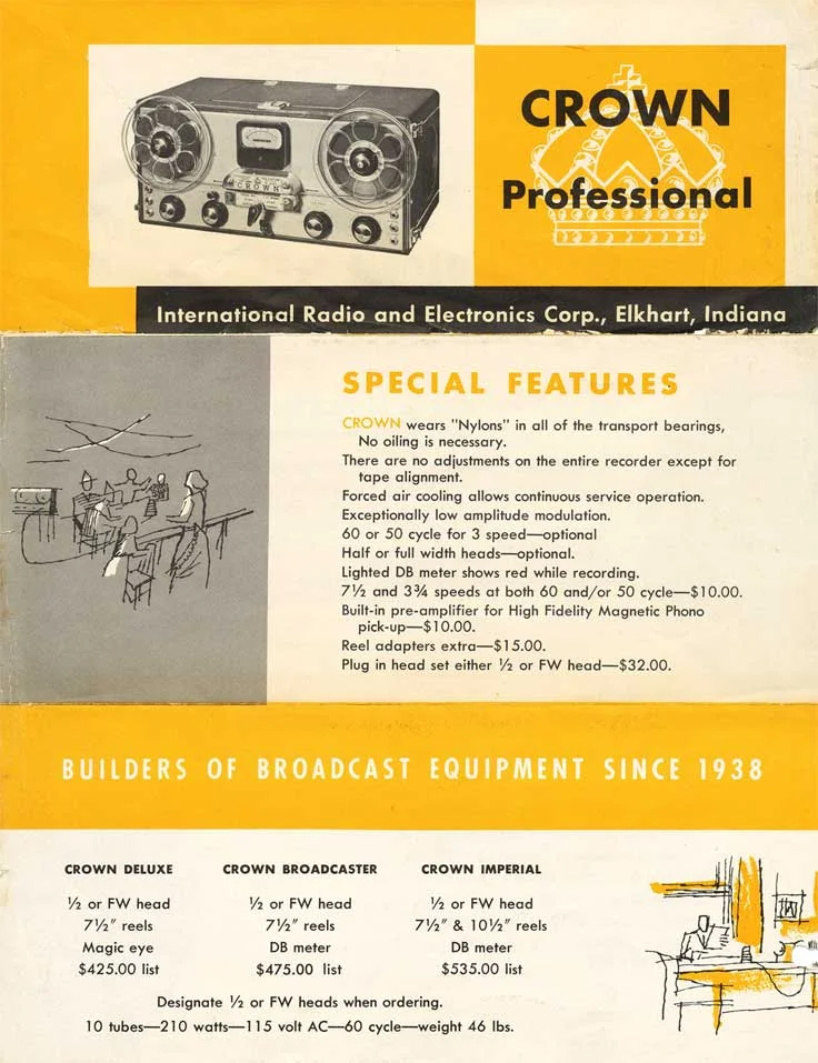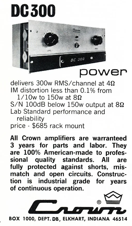 Ezek a szerény kezdetek végül a Crown Audio-hoz vezettek, amely a világ egyik legelismertebb márkája a professzionális erősítők terén, legyen szó fixen telepített, turné, hordozható PA és bármely egyéb alkalmazásokról.