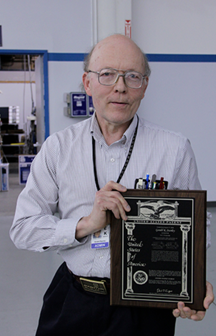 A legendás Crown mérnök és kutatás-fejlesztési vezető, Gerald Stanley, a Crownnál töltött ideje alatt elnyert számos technológiai szabadalmának egyikével.