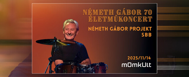 2025. november 14. MOMKult, Színházterem. A nagy napon – mikor az ünnepelt a szívéhez legközelebb álló zenekara, a Németh Gábor Project koncertjével koronázza meg hetven évét - a jó barátokból többen egyenesen a színpadon köszöntik majd. Hiszen zenésztársai, Tony Lakatos, Fekete-Kovács Kornél, Tornóczky Ferenc, Elek István, Kardos Norbert mellett, vendégként Alapi István, Mohai Tamás, és Csillag Endre is hangszert ragadnak a MOMKultban a kedvéért.